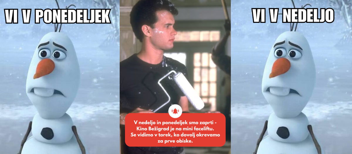 V nedeljo, 19. 10. in v ponedeljek, 20. 10. smo zaprti – Kino Bežigrad je na mini faceliftu. Se vidimo v torek, 21. 10., ko dovolj okrevamo za prve obiske.